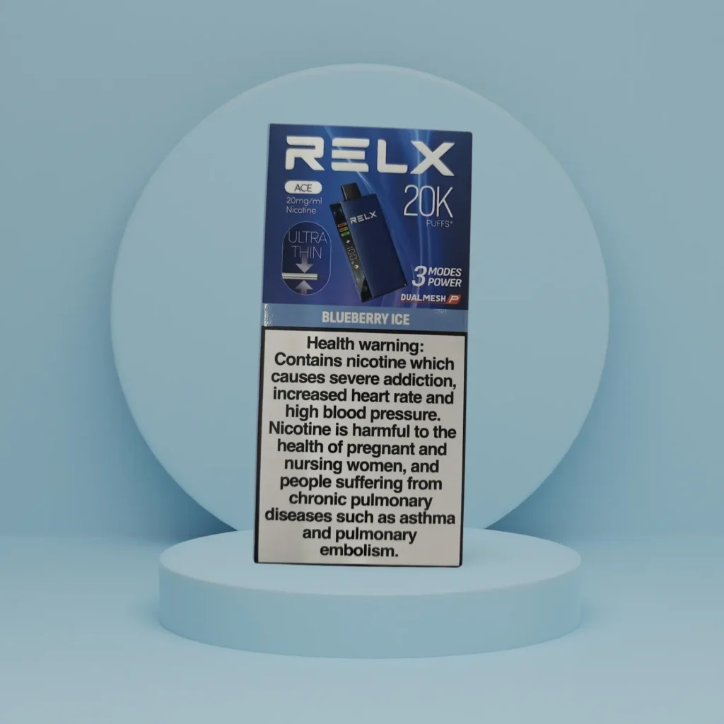 Discover RELX ACE 20000 20000 puffs disposable vape in Blueberry Ice. Delivering smooth 2% (20mg) nicotine satisfaction, this Mouth-to-Lung(MTL) device uses a mesh coil for consistent performance. A generous 20ml e‑liquid capacity keeps the flavor going. Enjoy the Blueberry Ice profile with clean, satisfying taste. Effortless convenience — Type‑C rechargeable convenience, no refills, no maintenance. Compact and travel‑friendly, perfect for everyday use in Dubai.